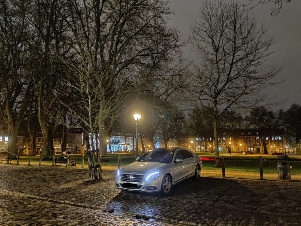 A late evening pick up, ready to chauffeur a C level executive from Bristol to Manchester.